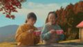 マルちゃん「赤いきつね緑のたぬき」の新CM「秋の山登り」篇を紹介。武田鉄矢さんと上白石萌歌さんが紅葉の山道を登り、頂上前で熱々のカップ麺を味わう“登山ご褒美”。