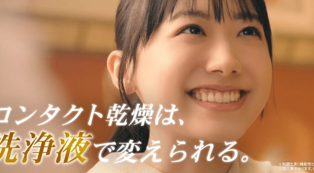 映画やドラマの予告編のような演出で、コンタクトレンズ装用時に感じる「瞳の乾燥」という悩みにフォーカス。芦田愛菜さんが役柄を演じ分けながら、洗浄液によるケアの重要性を伝える。