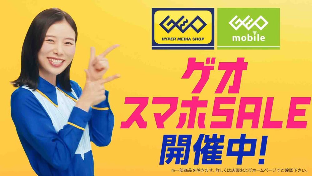 ゲオで 中古スマホを買うことのメリット を明るく紹介。SALE 開催期間中ならさらにオトクに選べることをアピールしています。