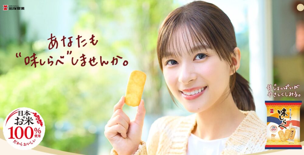 岩塚製菓のロングセラー米菓「味しらべ」が、女優・芳根京子さんを起用した新TVCM『味しらべ 中篇』を公開しました。今回のテーマは“日本のお米100%の味わいをチェック”。田んぼやバス停が印象的だった前作「帰りたくなる田舎がある篇」から舞台を変え、芳根さんが自宅の庭で穏やかにおかきを味わう秋の午後を描いています。やさしい光に包まれながら一枚のおかきを手に取り、「ほんとにお米の味がする…」とつぶやく姿が印象的。素朴ながらも贅沢な“日本のお米時間”を感じさせる映像となっています。