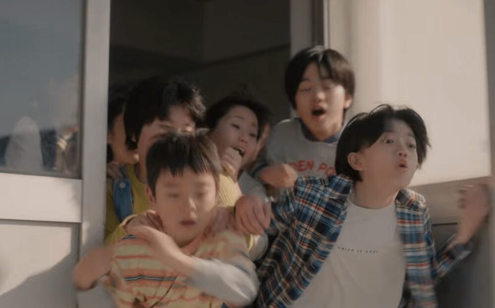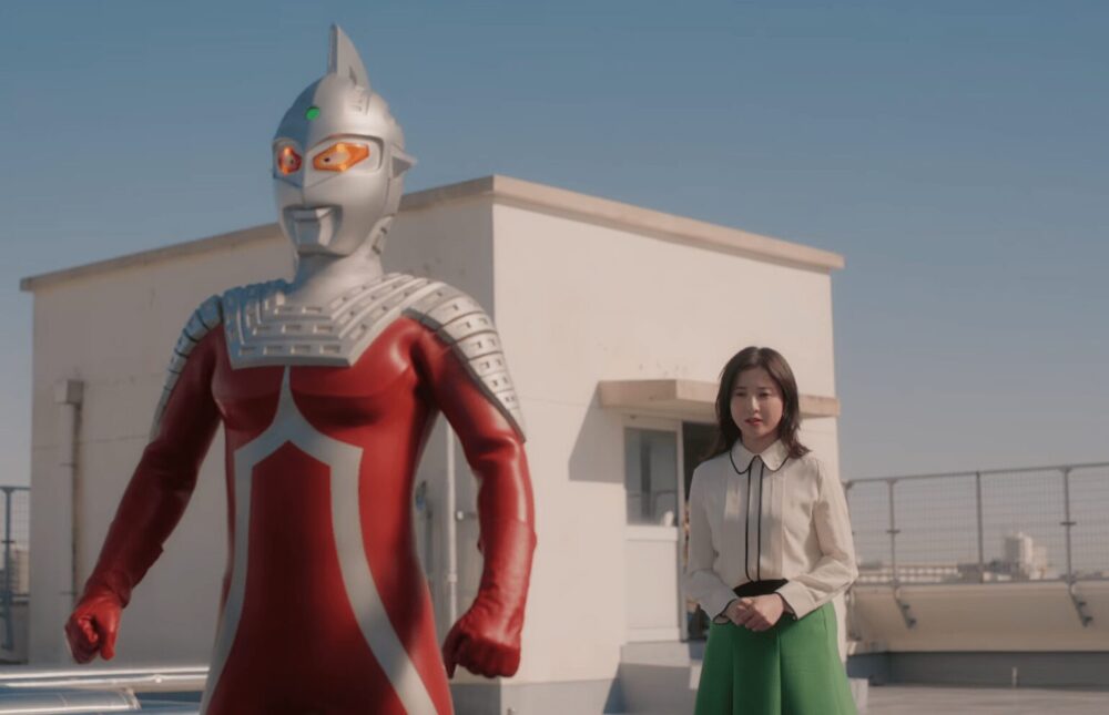 屋上の扉は、ただの扉じゃなかった。そこを開けると、子どもたちの噂が現実へ変わる――「本当に速いの?」。噂の正体を確かめたい一心で階段を駆け上がる生徒たち。扉の向こうで、吉高由里子さん演じるヨシタカ先生と、まばゆいシルエットのウルトラセブンが静かに見つめ合っていました。