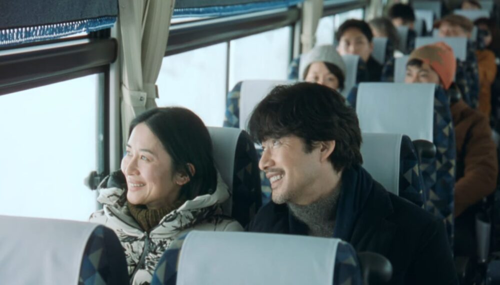 • ここで、冬の奥入瀬名物・「奥入瀬渓流氷瀑ツアー」(バスで氷瀑スポットを巡るツアー)を想起させる映像が差し込まれます。