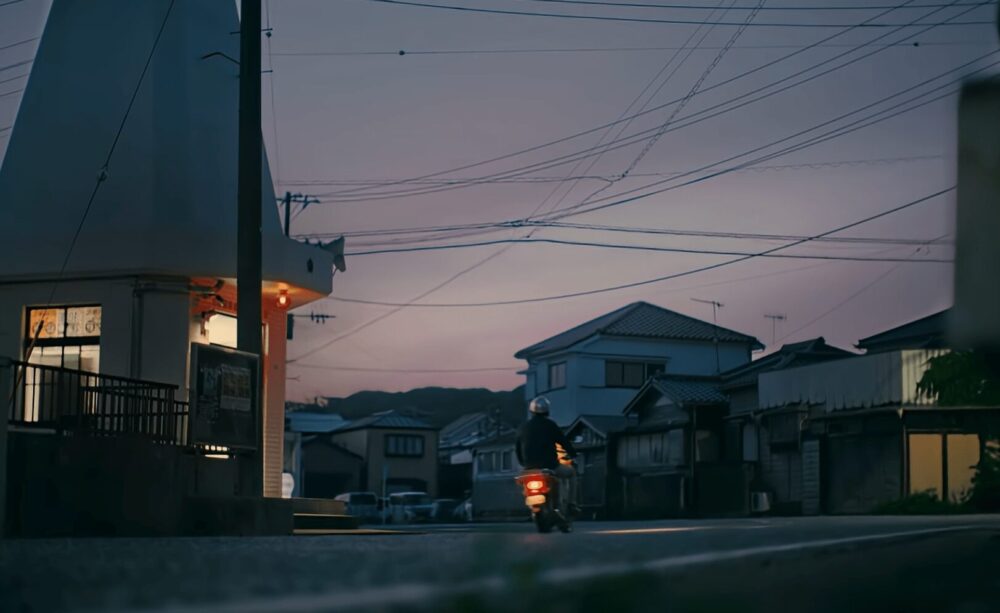 静かな道を走る新聞配達のバイクが、一日の始まりを告げます。