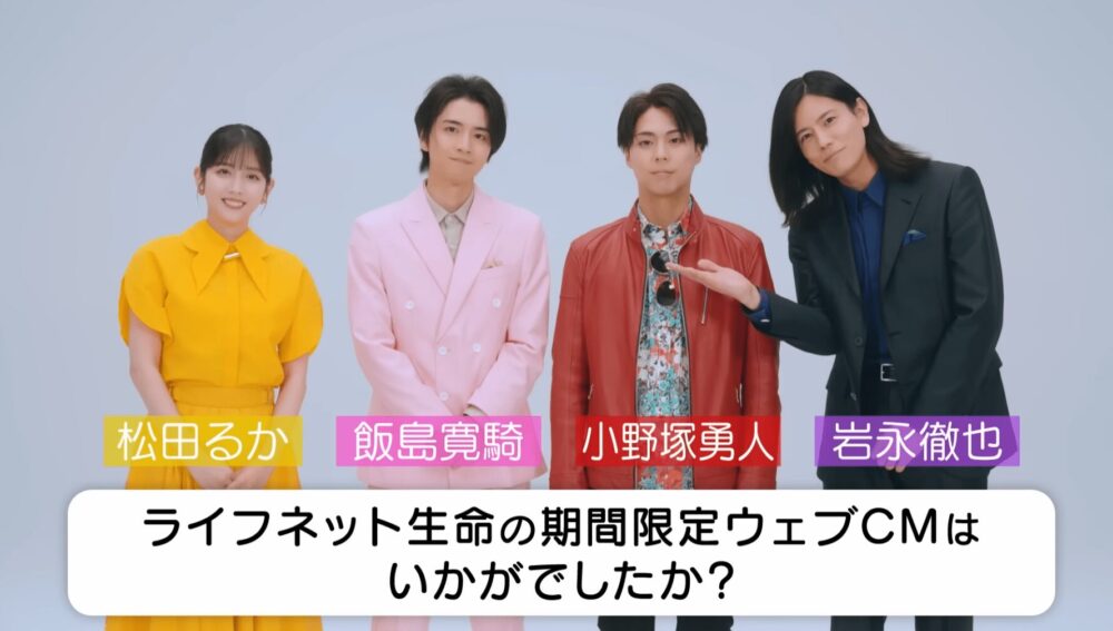 画面の向こうに現れたのは、松田るかさん、飯島寛騎さん、岩永徹也さん、小野塚勇人さん。かつて同じ作品で肩を並べた3人に小野塚勇人さんを加え、今度は柔らかな灯りのともる“会議室のような部屋”で、視聴者に向けて何かを語ろうとしていました。
