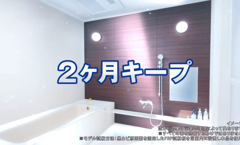 また、銀イオンの煙が天井まで行き届き、黒カビ原因菌を99.999%除菌しながら浴室全体をケアできる点が特徴。繰り返し発生する黒カビ悩みに対し、“掃除し続けるストレスからの解放”を提案する内容となっています。