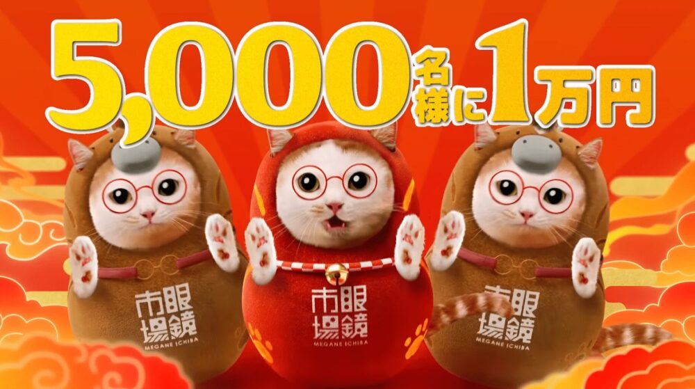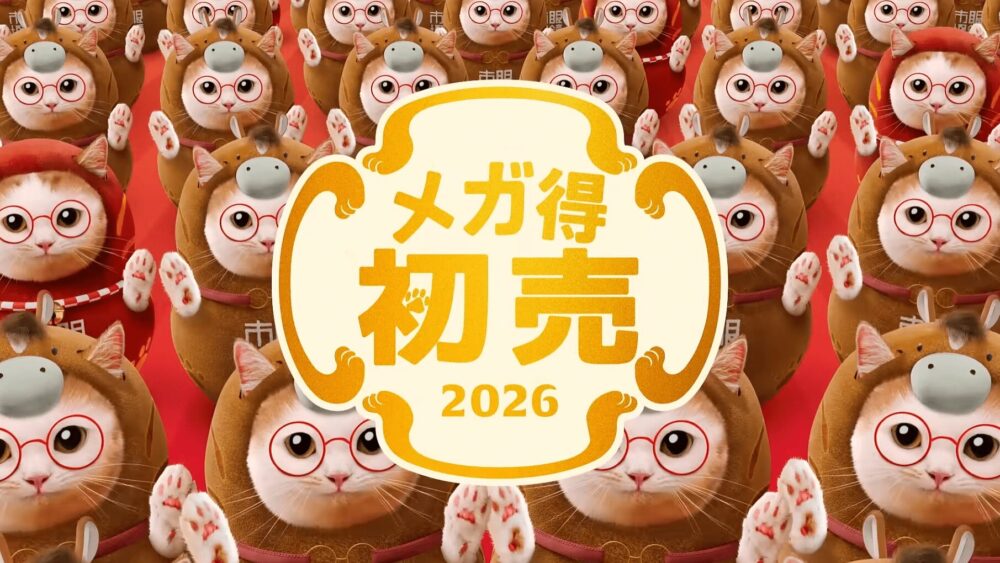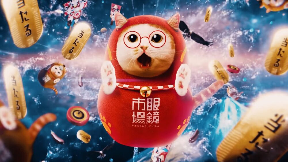 猫のしなやかさ、馬の躍動感、そしてだるまの福々しさが混ざり合い、画面いっぱいに広がる祝祭のリズム──それが、眼鏡市場の初売り「メガ得初売り2026」CM『猫馬だるまダンス』篇です。