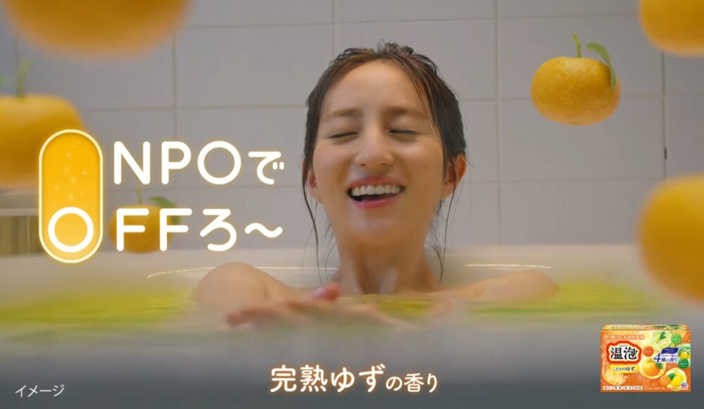 湯船にそっと浸かるだけで、気持ちがスッと軽くなる——そんな“切り替えの瞬間”を描いたアース製薬「24温泡 ONPOでOFFろう」篇。2024年10月に公開され、今では約1年前の作品となりましたが、堀田茜さんの自然体な演技と柔らかな映像トーンは、いま見ても癒し度がじわりと残る仕上がりです。入浴剤の香りや温かさが画面越しに伝わってくるような、静かでやさしい時間を感じさせるCMになっています。
