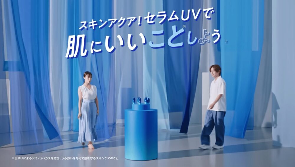紫外線対策と同時にスキンケア効果を兼ね備えた“セラム発想”の日焼け止めとして、うるおいを保ちながら肌を守る点が特徴。軽やかなテクスチャーと毎日使いたくなる使用感を、2人の自然な掛け合いで伝える内容となっています。