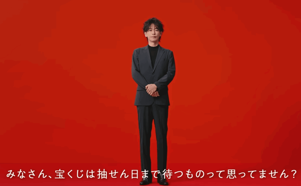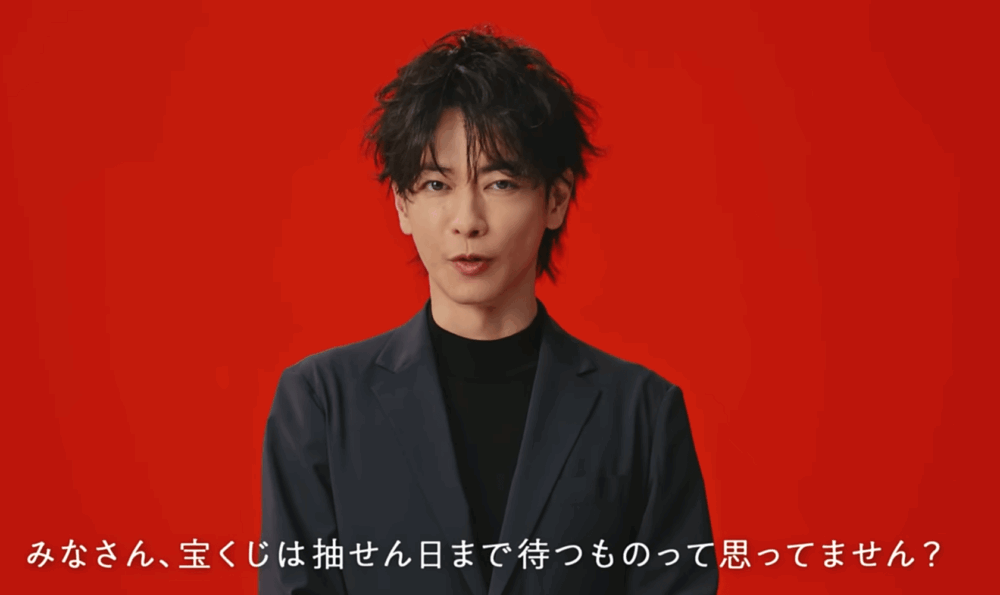CMでは、テレビの中から語りかける佐藤健さんと、テレビを見ている夫婦やカップルとのコミカルなやり取りを通じて、「待たずに結果がわかる宝くじ」というクイックワンの魅力をわかりやすく表現しています。