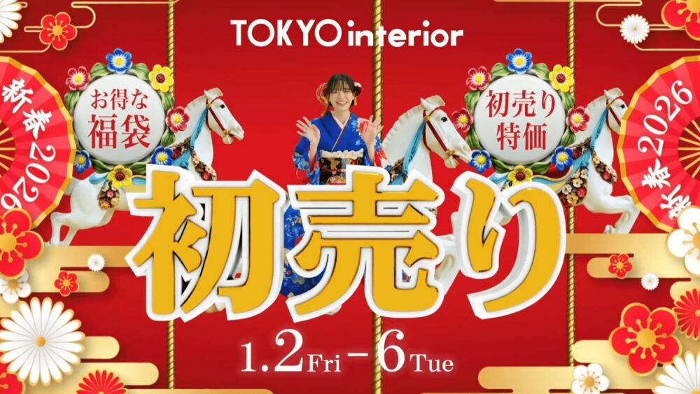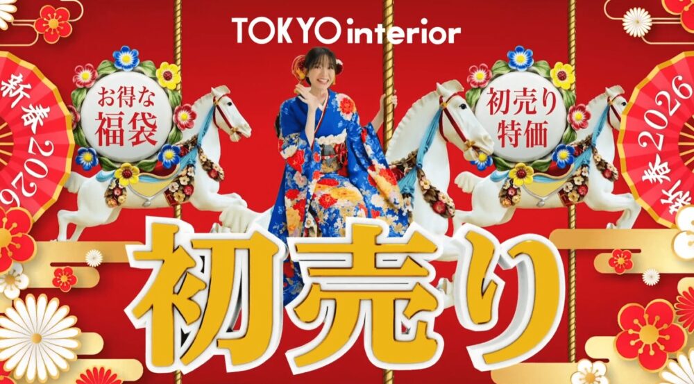 新年を祝う特別な初売りセールへの期待感と、東京インテリアが提案する暮らしの彩りを、小鳥遊可奈さんの柔らかい魅力とともに表現。 - 見どころ