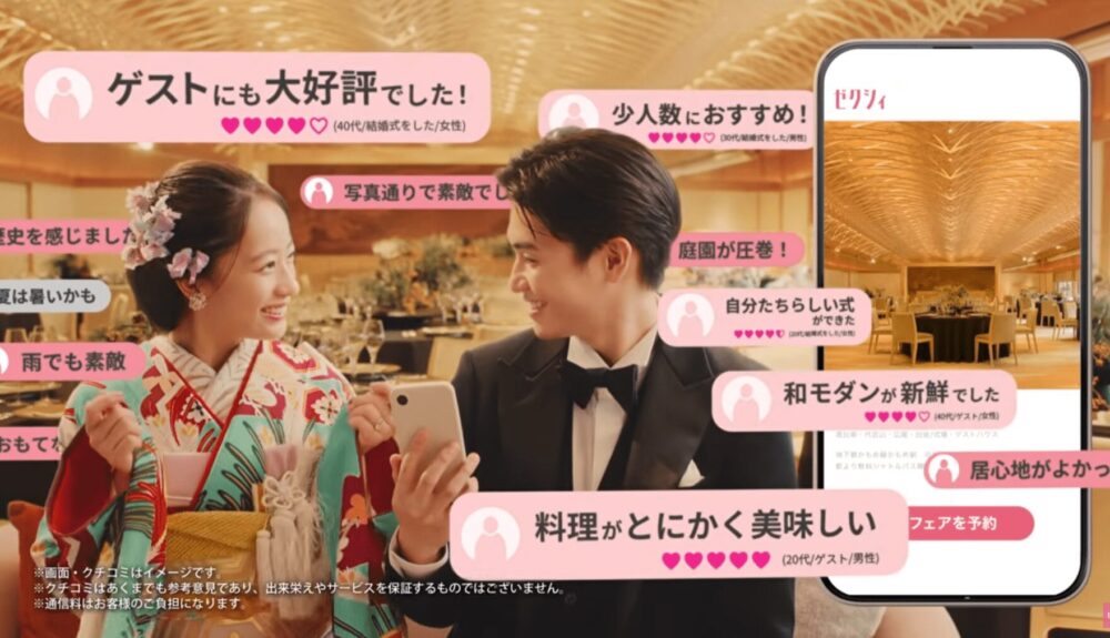 - CMタイトル:「結婚決めたら、ゼクシィ クチコミ式場探し」篇